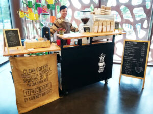 Notre offre événementielle « Café Móvil » et son équipe de barista assurent le service de café de spécialité avec une extraction experte et parfaite jusqu’à 300 boissons à l’heure (500 boissons/h avec café filtre) pour tous vos événements (events) en intérieur (indoor) comme en extérieur (outdoor), sur Grenoble et la région.